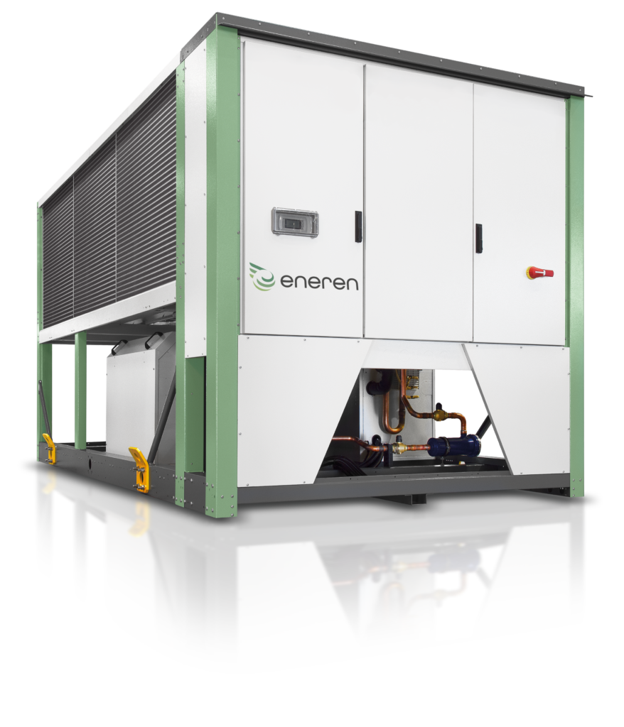 Thanks to the possibility of installing the pumping groups inside the unit, the hydraulic flow can be modulated to maximize the system efficiency. The use of EC electronic fans allows complete modulation to be managed according to energy and acoustic requirements.