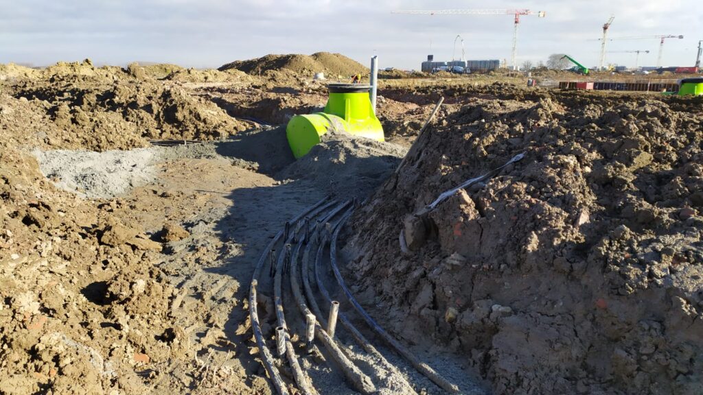 L’esigenza del committente è stata soddisfatta grazie ad un impianto geotermico ad anello, a servizio di tutte le sottocentrali degli edifici e con un unico motore, in grado di bilanciare il loro fabbisogno di energia. Una soluzione che garantisce efficienze energetiche estreme, ben superiori ai tradizionali impianti aerotermici o a combustibile e un notevole risparmio economico.
