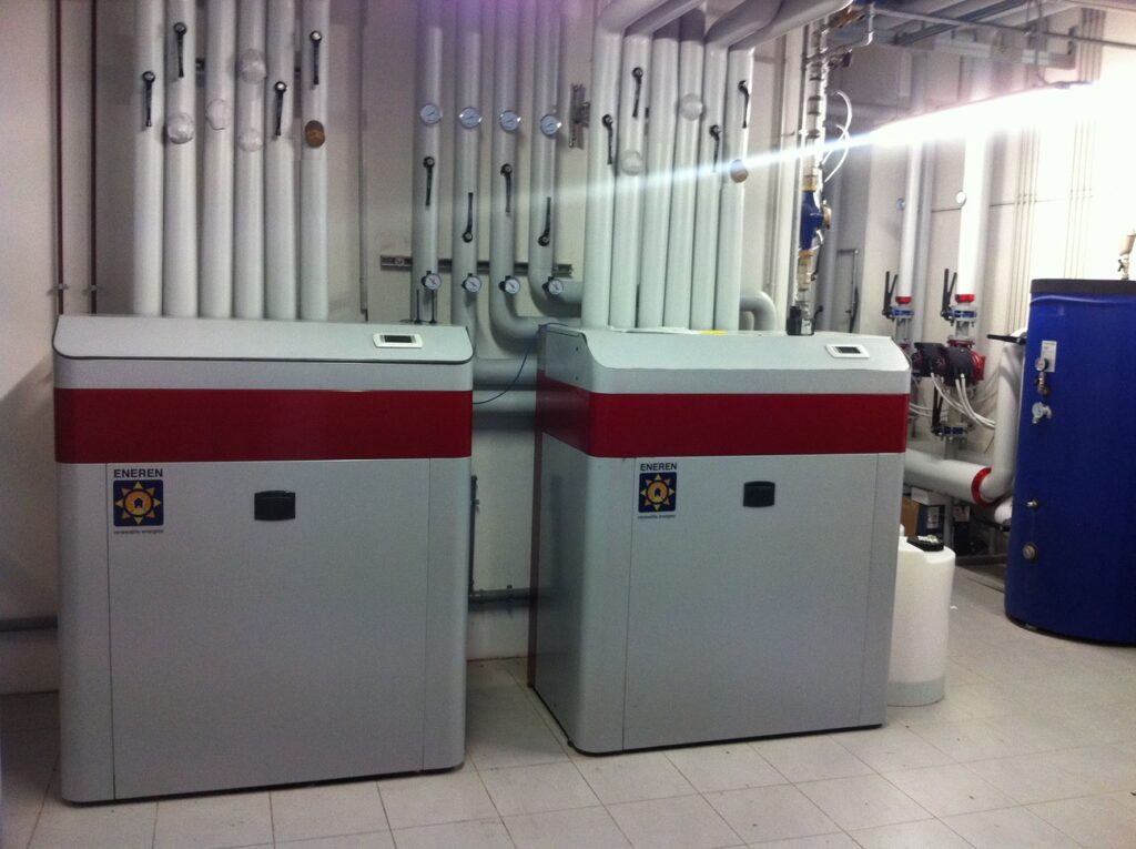 Un Impianto costituito da 12 sonde geotermiche da 120 m con utilizzo di acqua pura senza glicole e due pompe di calore full inverter a recupero totale per impianto a 4 tubi.